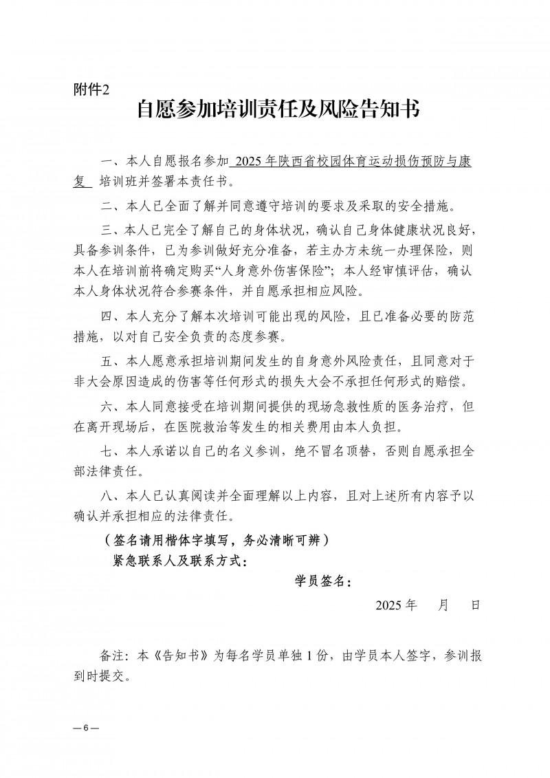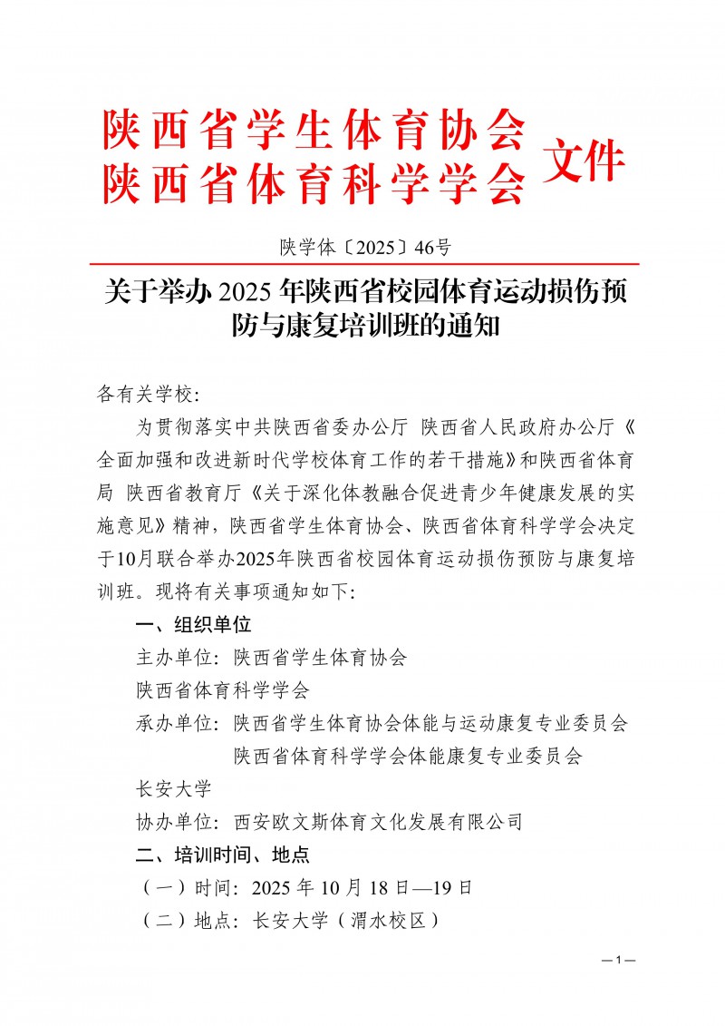 关于举办2025年陕西省校园体育运动损伤预防与康复培训班的通知