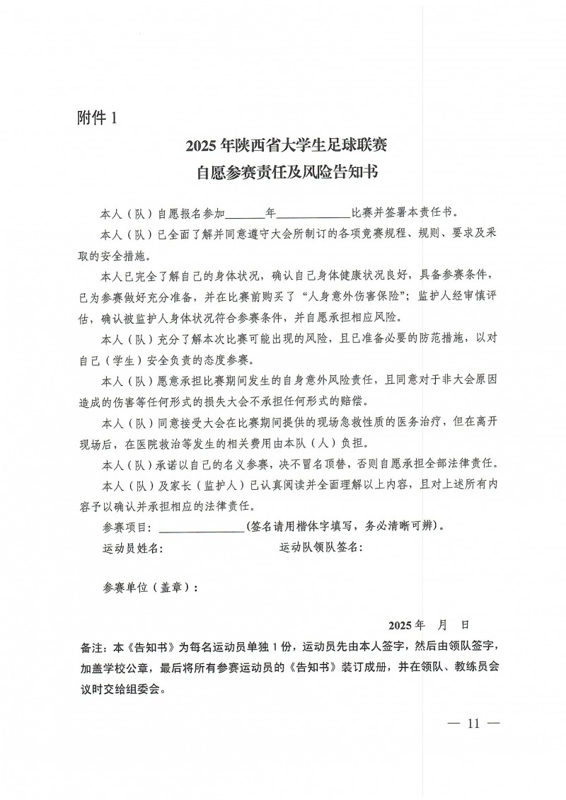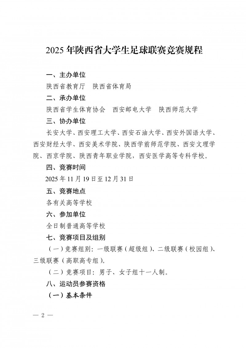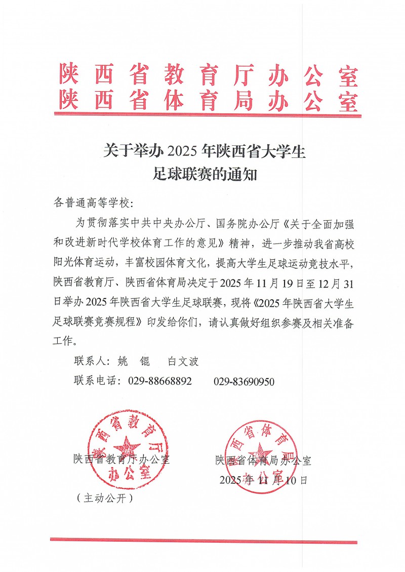 关于举办2025年陕西省大学生足球联赛的通知