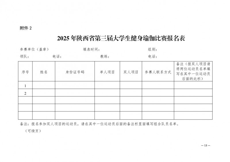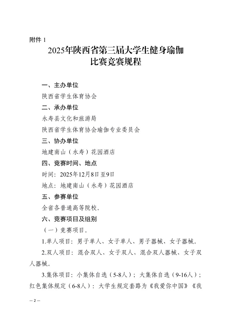 关于举办2025年陕西省第三届大学生健身瑜伽比赛的通知