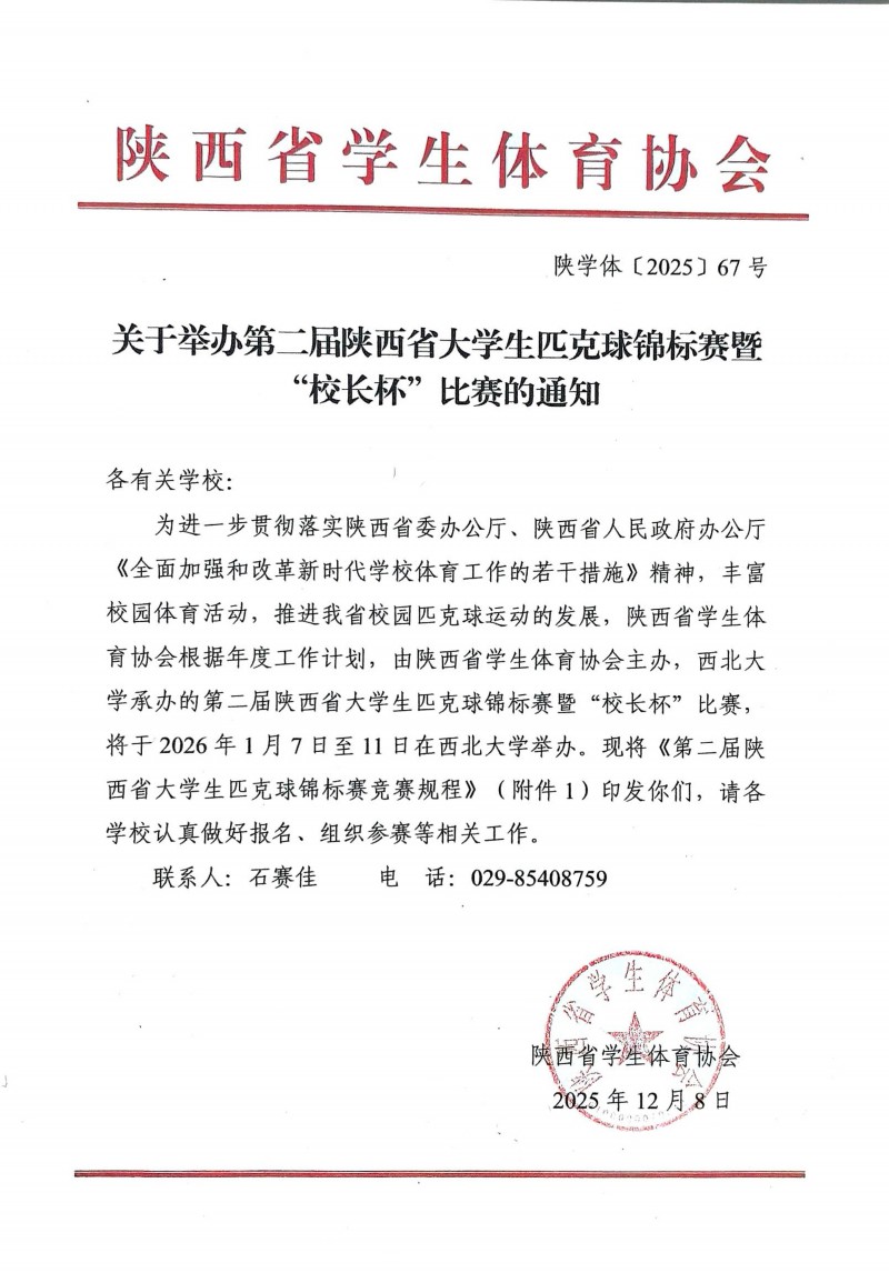 关于举办第二届陕西省大学生匹克球锦标赛暨“校长杯”比赛的通知
