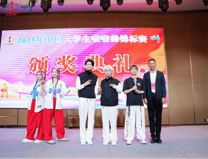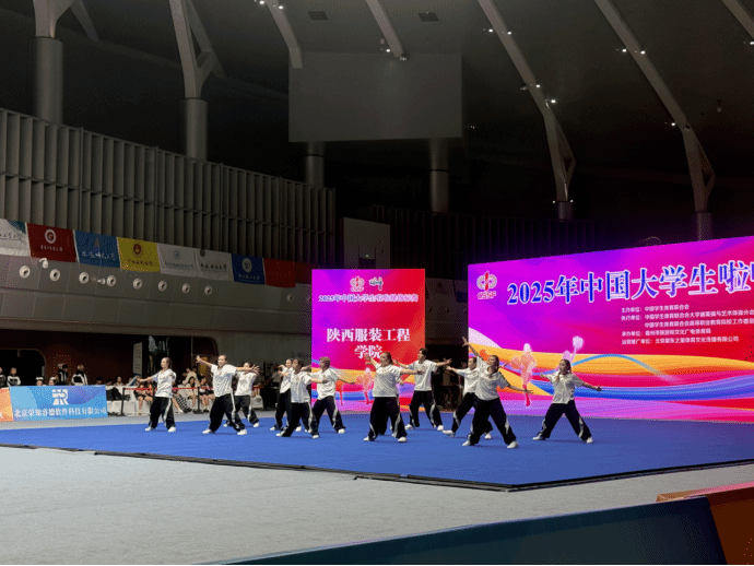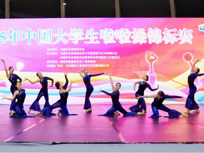 2025年11月12日-17日,由中国大学生体育协会主办的2025年中国大学生啦啦操锦标赛在海南儋州市海花岛举行。本次赛事是中国大学生啦啦操领域水平最高、影响力最广的官方赛事之一,吸引了包括北京体育大学、华东师范大学、湖南师范大学、广州体育学院、武汉体育学院等全国89所高校、2200余名运动员参赛。我校啦啦操队在领队倪德财与教练员赵倩、王晖的带领下夺得冠军1项、季军1项、第四名1项、第五名1项、第八名1项的好成绩。同时,赵倩老师被评为优秀教练员。